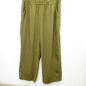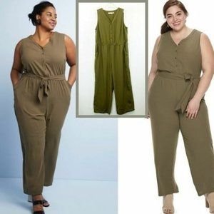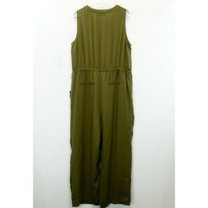 EVRI Jumpsuit 0X Large Olive Green Overall PLUS SIZE V-Neck Button Down Pockets