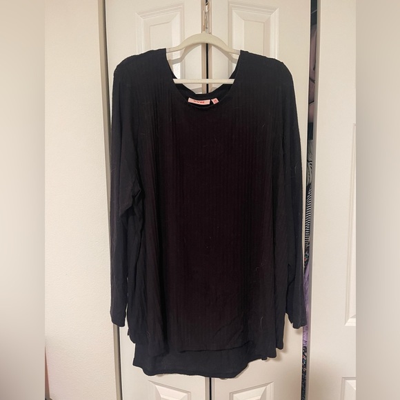 EVRI Ribbed Long Sleeve Black Top