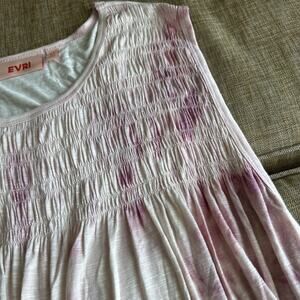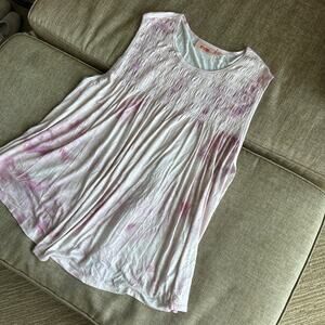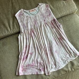 EVRI Sleeveless Top Womens 2X Pink Tie Dye Tank Blouse Smocked Smock Scoop Neck