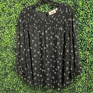 A smocked design with sheer sleeves. Heart design. Excellent condition. Smoke/pet free home. Crewneck Elastic cuffs 3/4 sleeves Polyester Machine wash 🔴