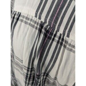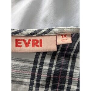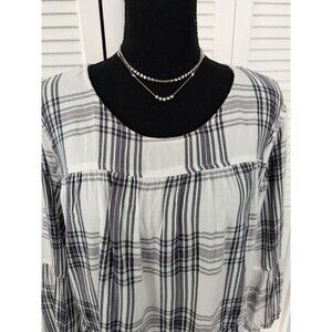 EVRI Top Women 1X Babydoll Bell Sleeve White Purple Black Modal Plaid Bohemian