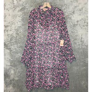 EVRI Women Ditzy Floral Bloom Tiered High Neck Long Sleeve Babydoll Dress 2X