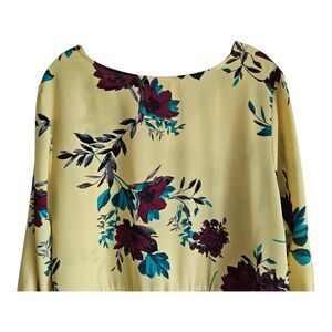EVRI Women's 1X Blouse V-Neck Drawstring Waist Yellow Floral 3/4 Sleeve 50"