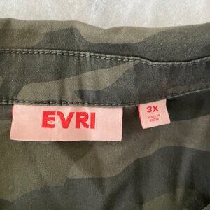 EVRI Womens Green Long Sleeve Camouflage Print Military Utility Jacket Size 3X
