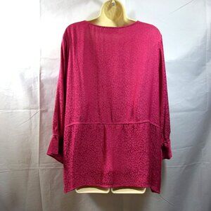 EVRI Womens Peplum Top Blouse Plus Size 1X V-Neck 3/4 Sleeve Animal Print Pink