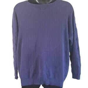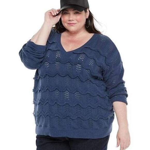 EVRI Women’s Wavy Pointelle Knit V-Neck Sweater - Navy Blue, Size 2X - NWOT