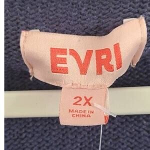 EVRI navy sweater, plus size 2X sweater, pointelle knit sweater, wavy knit pullover, women’s v-neck sweater, navy blue lightweight sweater, cozy fall top, NWOT plus size fashion