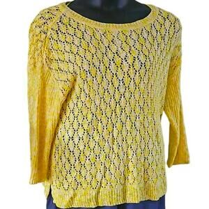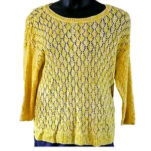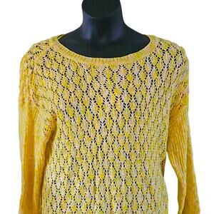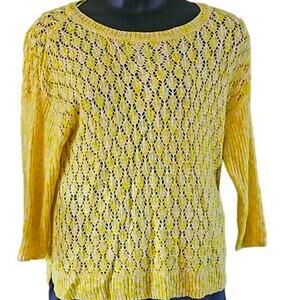 EVRI Women’s Yellow Pointelle Knit Pullover Sweater Size 1X