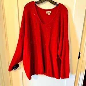 Stay cozy and stylish with the EVRI Women's Red Sweater. Perfect for any occasion, this vibrant red sweater adds a pop of color to your wardrobe.It has some sparkles on it