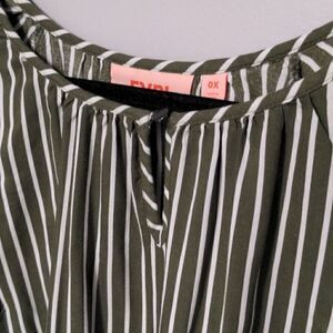 Green and white striped long sleeve blouse. Button closure on neckline as well as wrist