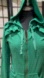 Chic green hoodie featuring stylish ruffle details. Includes a front zipper and convenient pockets., THUMBHOLE CUFF, ACTIVE, ATHLEISURE WEAR, PRE OWNED IN BEAUTIFUL CONDITION: