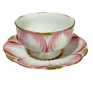 EW Princess Japan bowl & saucer set white pink gold lotus flower porcelain