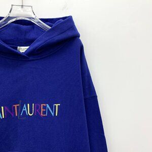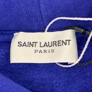 EW0042 Saint Laurent Dark Blue Letter Printed Cotton Hooded Long Sleeve Sweatshirt Size M Brand New with Tag