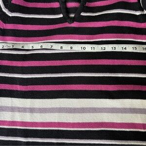 EWM Black and Pink V-Neck Striped Sweater