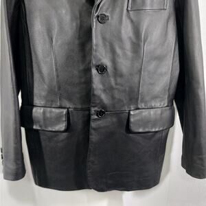 EXCELLED! LUXURIOUS BLACK GENUINE LEATHER TAILORED FREES JACKET, BLAZER! SZ M