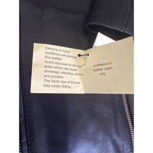 EXCELLED Womens Black Leather Moto Jacket Zippered Pockets & Sleeve Sz M NWT