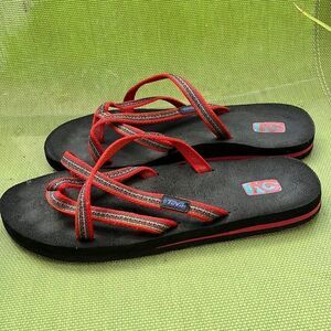 Excellent condition size 9 Teva multi-strap flip flops/sandals. Mush footbed.