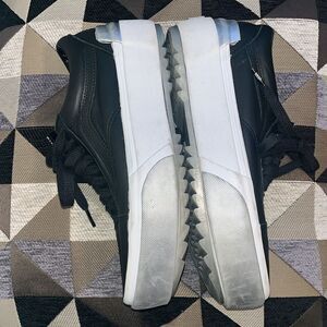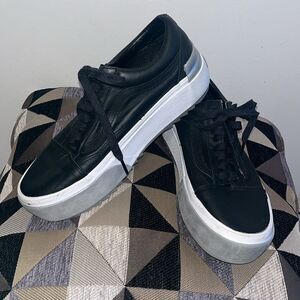 EXCELLENT CONDITION VANS OLD SKOOL STACKED SHINY BLACK/WHITE PLATFORM SHOES 8.5