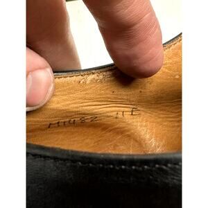 This classic oxford features a brogued punching detail across the toe cap. Made using the finest black calf leather with bark tanned single leather soles. Benchmade in England. Size 11 Wide (E).