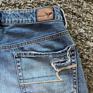 Excellent distressed condition size 4 buttonfly Hi-Rise Festival American Eagle shorts. 100% cotton. Raw hem.