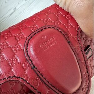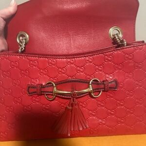 GUCCI Emily Guccisima Red Leather with web gg debossed print and horsebit logo on closure!