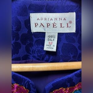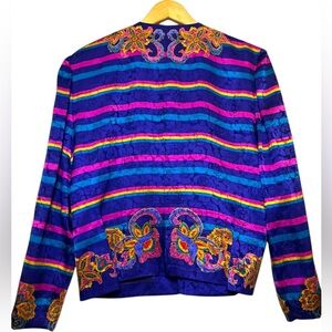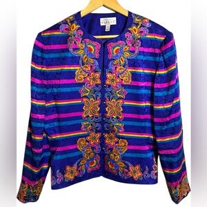 EXCELLENT Vintage Adrianna Papell Silk 2Piece Suit Blazer Skirt Stripe Floral 12
