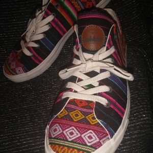 SPECTACULAR "INKKAS" SPECTRUM HANDMADE SNEAKERS. VERY GOOD CONDITION. LOW TOPS. SIZE WOMEN=13 AND MEN=11. WORLD WEAR. CANVAS SNEAKERS. THESE LOW TOP ARTISAN SPECTRUM SNEAKERS ARE THE MOST ICONIC INKKAS PRODUCT SINCE THEY WERE INITIALLY LAUNCHED IN 2012. HANDMADE USING "SUSTAINABLE" FAIR TRADE PRODUCTS. MEN OR WOMEN CAN ROCK THESE SNEAKERS. VIBRANT COLORS.