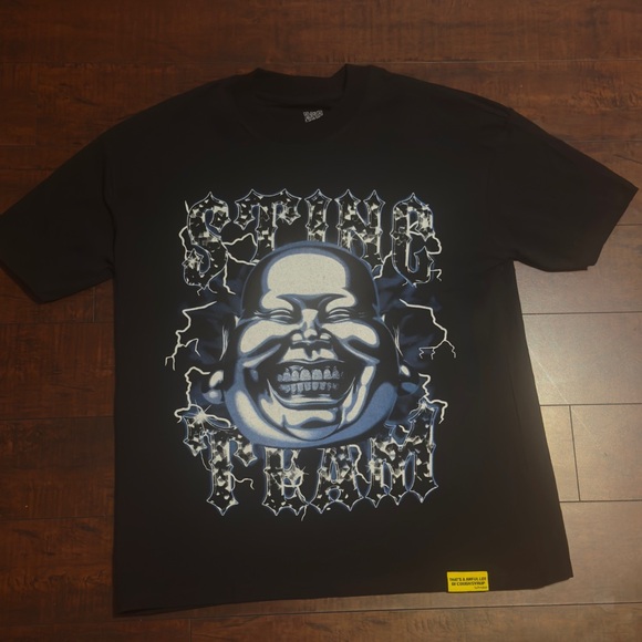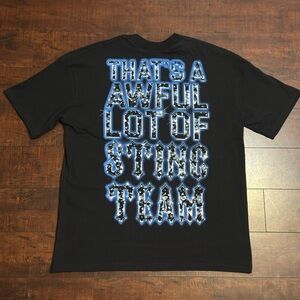 rare graphic tee, sealed, black cotton, streetwear, bold print, collectible, urban style, artistic design, statement piece, limited edition