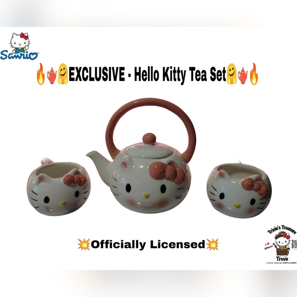 What better way to enjoy a cup of tea than with this Officially Licensed and EXCLUSIVE Hello Kitty Tea Set! Not only is it perfect for a cup of tea, it's an excellent addition to your Hello Kitty Collection.๐ฅ๐ซ๐ค