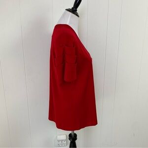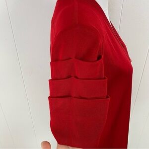 EXCLUSIVELY Misook Red Pleated Statement Short Sleeve Button Cardigan Top XL