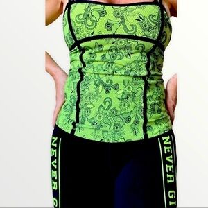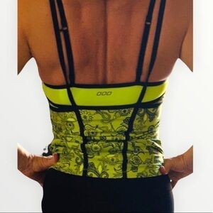 Online exclusive online only top the line Lorna Jane EXCLUSIVELY YOURS black and neon paisley design bra top in medium. Straps in back can be vertical or crisscrossed for more support. Excellent condition. Only worn a few times. Paid $130