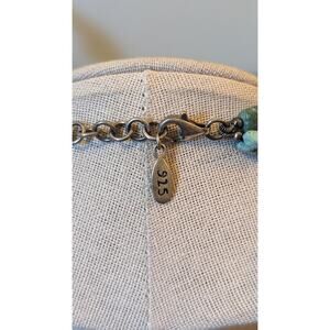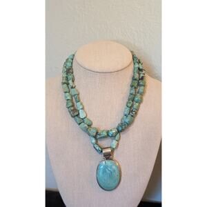 EXEX 925 Sterling Silver Claudia Agudelo Two Strand Turquoise Pendant Necklace. Pre-owned, this necklace is in excellent condition. It measures 16-18" long. Bezel set pendant measures 2.25" included hinged bale and 1.25" wide. More green than blue.