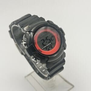 Add a sporty-chic vibe to your everyday look with this stylish Exhilaration Women’s Digital Watch. Featuring a sleek black design with bold pink accents, this 35mm timepiece offers both fashion and function in one lightweight, easy-to-wear package.