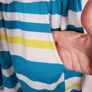 Tie waist, pockets, striped, romper. Pit to Pit 16" Length 30" Inseam 3 1/2" Condition Pre Owned C-2902-40