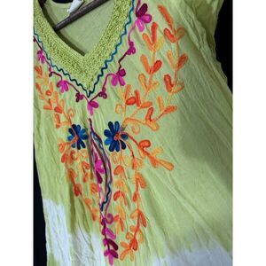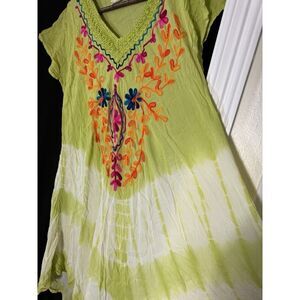 EXIST Embroidered Boho Dress Free Size Flowy Hippie Tie Dye Gauze Beachy Bright