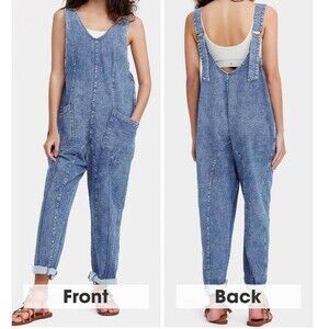 EXLURA High Roller Denim Bib Jumpsuit Womens Size M Casual Loose Baggy Overalls