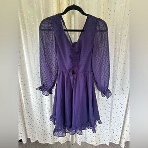 EXLURA NWT Swiss Dot Sheer Puff Long Peasant Sleeve Ruched Front Mini Dress S