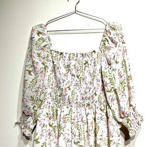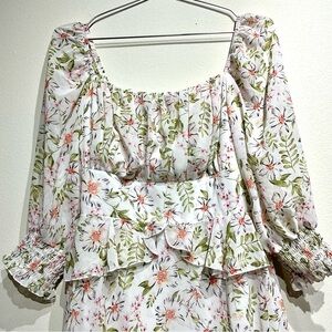 EXLURA Womens Floral Ruffle Sun Dress Sundress Tiered Square Neck Long Sleeve M.