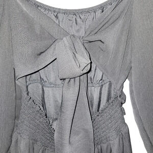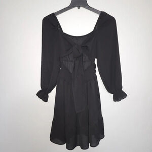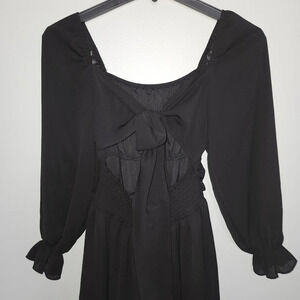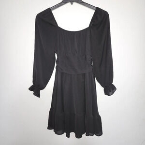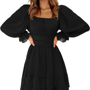 EXLURA women's casual long lantern sleeve dress square neck ruffle size M black