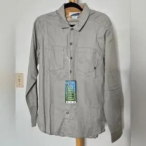 EXOFFICIO Insect Sheild -Classic light gray long-sleeve shirt with a clean button-down front. Two chest pockets for a practical, casual look. Soft, breathable fabric for all-day comfort. insect Shield Hiking or Fishing Shirt with Built in Bug Protection