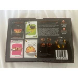 For sale is a brand new, factory-sealed copy of the original “Exploding Kittens” card game! This hilarious and strategic card game is perfect for 2-5 players, ages 7 and up, with a playtime of 15 minutes. Designed by Elan Lee, Matthew Inman, and Shane Small, this game became the most-backed Kickstarter project in history, featuring quirky cards with tacos, lasers, and sometimes goats!