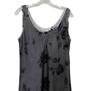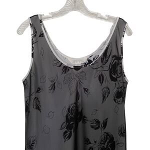 EXPRESS Women's Sz 11/12 Maxi Tank Pullover Dress with Black Sheer Chiffon Overlay. Base layer is white with black roses. 100% polyester. Good pre-owned condition.
