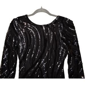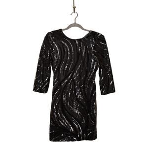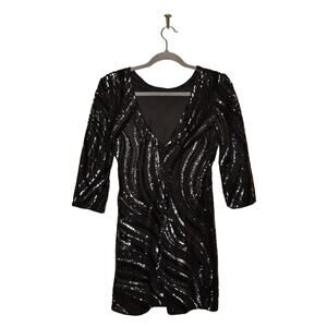 EXPRESS $148 3/4 Sleeve Sequin V-Back Mini Cocktail Dress Black Size 0