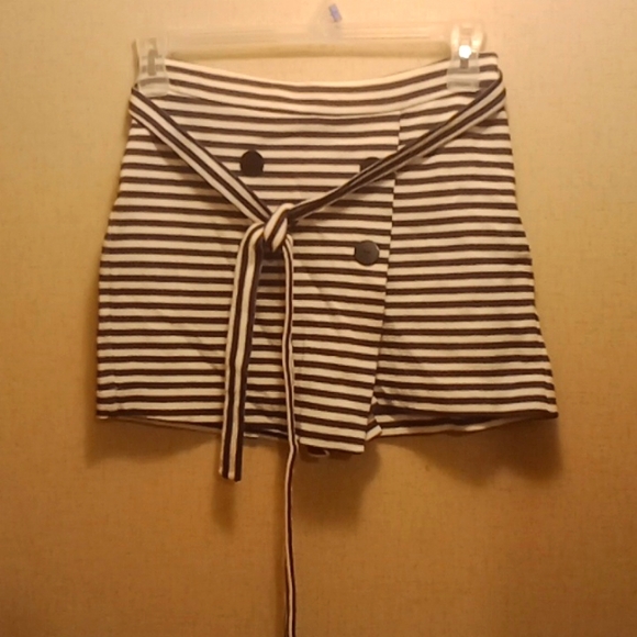 Skort with tie around belt.Has four buttons on front for fashion.