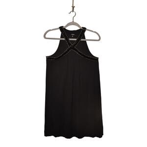 EXPRESS $78 Black Embellished Halter Neck Mini Dress Jersey Knit Stretch Medium