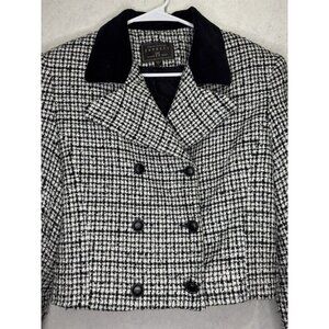 EXPRESS 90s Vintage Marque Gingham Check Velvet Collar Blazer Jacket LARGE READ