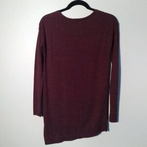 Keywords- Knit, Crewneck, Burgundy, Long Sleeve, Asymmetrical, Fall, Winter, Lightweight, cozy