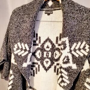 EXPRESS Aztec inspired sweater jacket vest cardigan Gray and cream Sz.Med