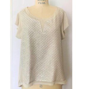 EXPRESS BEIGE METALLIC SILVER QUILTED SHORT SLEEVE TOP LARGE NWT
