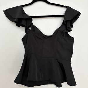 EXPRESS BLACK TWIST FRONT FLUTTER SLEEVE PEPLUM TOP size XS